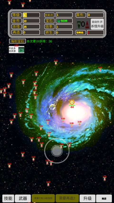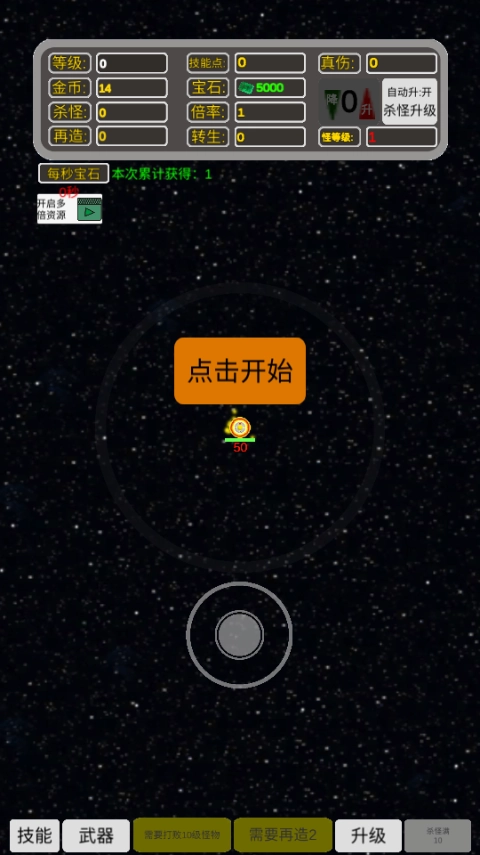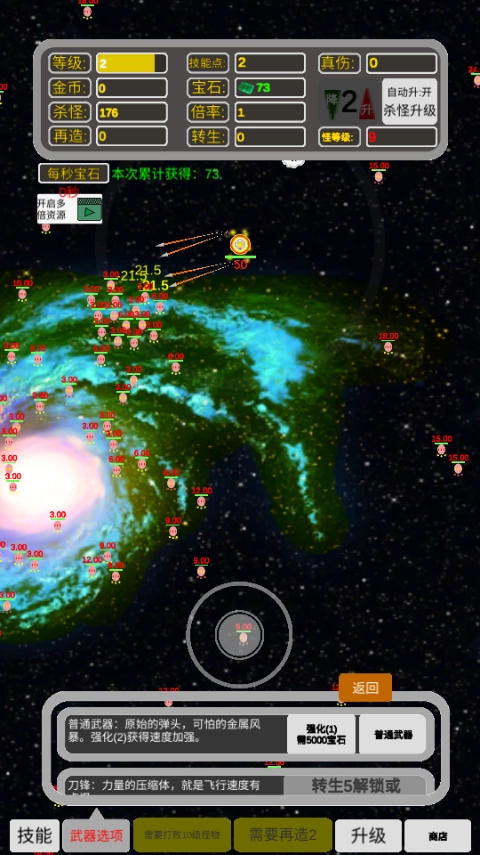 3、当射杀敌人积累足够钻石后,可点击武器选项进行强化,强化后的武器能增加多个射击点。