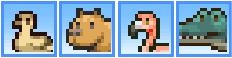 动物:鸭子、水豚、火烈鸟、鳄鱼