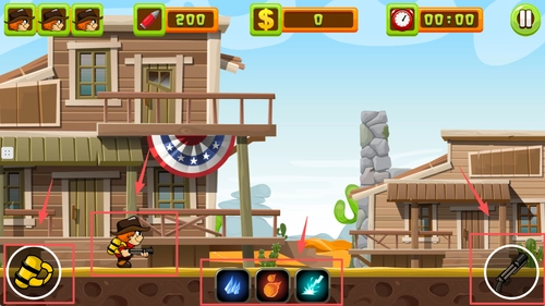 用虚拟摇杆操控角色移动,点击瞄准射击按钮来对付地面和空中的僵尸,合理分配弹药以保障持续攻击。