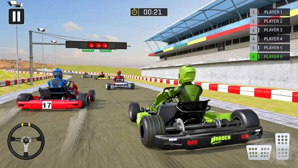 和其他赛车手比拼较量,参加卡丁车挑战赛,解锁更多成就。