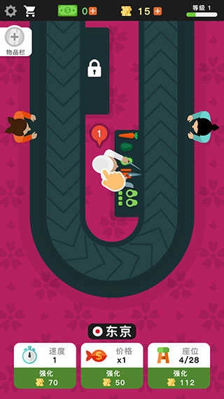 1、进入游戏后,厨师会持续制作寿司,玩家点击厨师能够提升其制作速度。