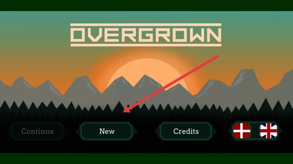 1、在游戏启动页面,点击【New】按钮,开启【Overgrown】新游戏,进入荒野冒险的故事线。