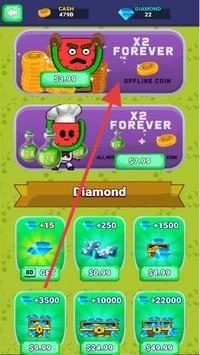 3、打开商店界面,挑选“X2FOREVER”之类的增益项目进行购买,也可以用钻石来兑换资源,以此增强餐厅的经营能力。