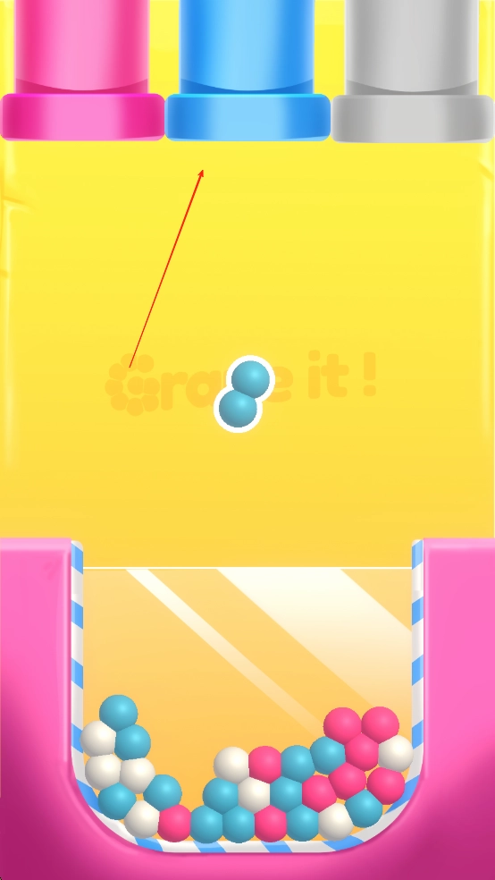2、依据关卡规定的分类目标,合理安排吸附的先后顺序以及道具的使用时机,例如可以优先处理颜色数量较少的部分,或是借助道具的轨迹来规划多色小球的分离路线。