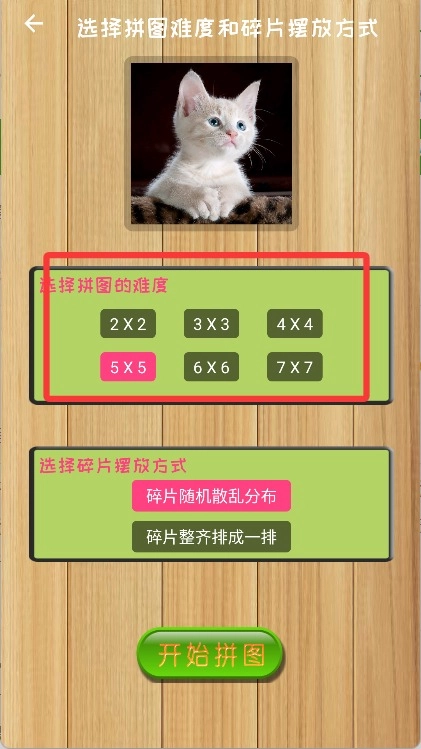 3、最后选择拼图难度和碎片摆放方式就可以开始拼图了。
