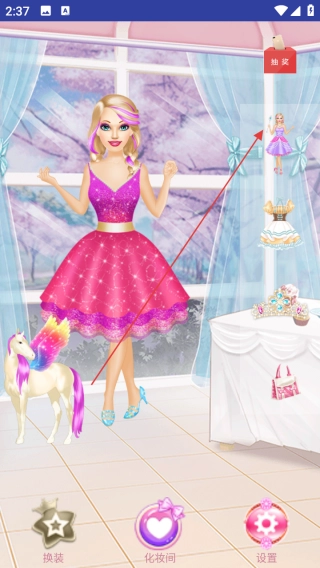 3、自由搭配服饰与饰品,塑造独一无二的公主形象,借助化妆间等功能来丰富角色外观,实现持续装扮。