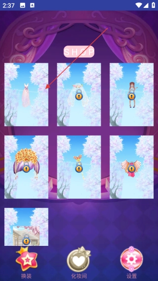1、点击城堡界面的“开始”按钮,进入换装场景后,可从右侧的服饰选项(例如连衣裙)中挑选,为角色进行搭配。