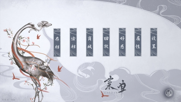 3、打开菜单,可【存档】【读档】管理进程,逛【商城】换道具,【回放】剧情,查看【好感】【属性】,借【设置】调整游戏体验 。