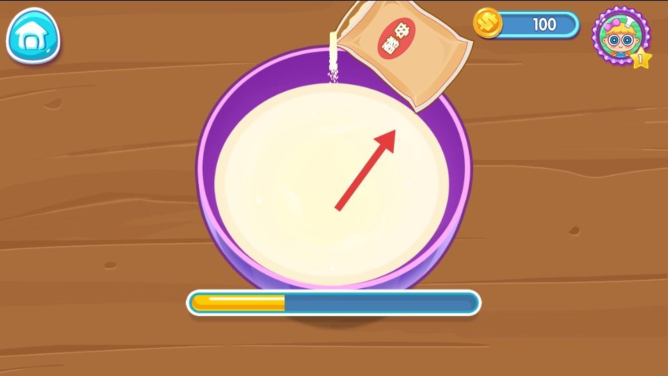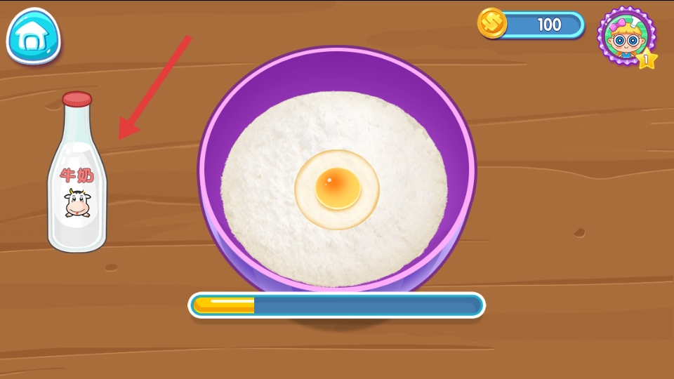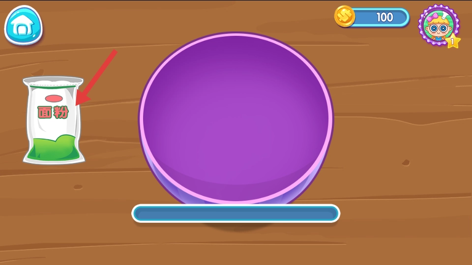 进入游戏后,在主界面点击制作披萨的选项;进入操作界面的第一步是取出面团,接着使用擀饼工具把面团擀成厚薄均匀的圆形披萨底。