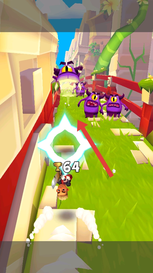 3、坐骑召唤使用:遇大量怪物时连续点击屏幕两次召唤坐骑,召唤点击屏幕即可触发坐骑远程攻击,清除同线怪物,帮助玩家快速脱离险境,顺利推进跑酷进程。