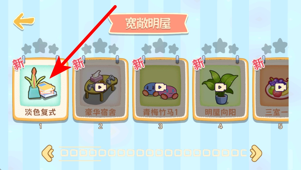 进入选定的收纳场景后,会展示该场景下的具体收纳主题,例如淡色复式等,玩家点击对应的主题,就能开启该主题的收纳挑战。