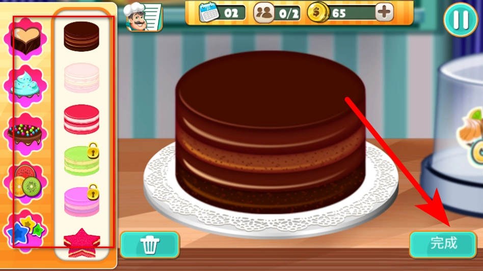 5、蛋糕烘烤好之后,挑选对应的样式来装饰蛋糕,确认装饰效果没问题后,点击完成按钮提交这个订单。