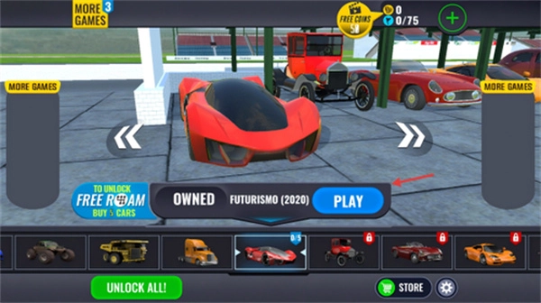 进入游戏后,从车库里挑选FUTURISMO型号的赛车,然后点击PLAY按钮,就能开启第一章节的任务挑战了。