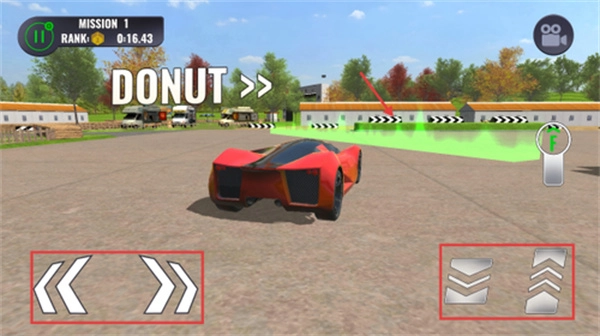 车辆转向可通过左右滑动左侧方向盘来控制,速度调节则由轻触右侧油门踏板实现,制动操作需长按刹车完成。