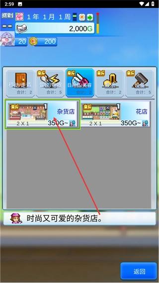 3、在建造选择界面中,杂货店被归为日用品类,建造它需要花费350G。这家店铺风格时尚可爱,能够提供相应的商品。