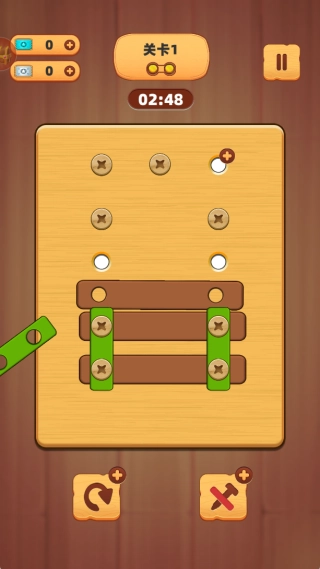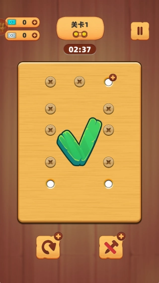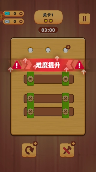 随着关卡难度逐步增加,木板的数量也会相应变多,玩家将碰到更多特殊的螺丝,不妨尽情挑战所有关卡。
