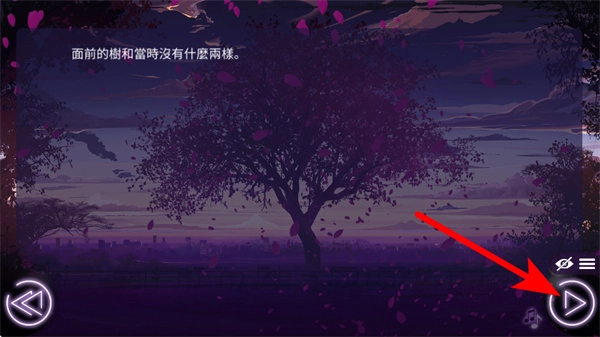 2、在剧情展示界面,点击右侧的播放按钮,即可推进当前剧情文本的展示进度,解锁后续情节。