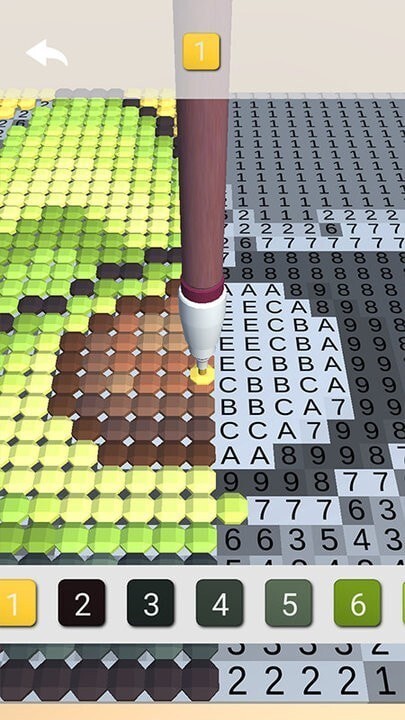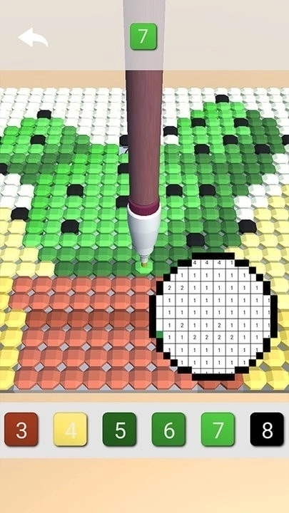 1、在艺术涂鸦填色大师这款游戏里,玩家需要依据像素网格里的数字来挑选对应的颜色进行填涂。