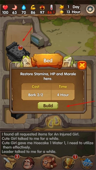 你可以挑选合适的地方建造自己的家园,从最初简单的庇护所慢慢升级成牢固的营地,建造能储物、制作物品的功能性设施,为生存提供支持,打造只属于你的原始家园,以此抵御来自外界的危险。