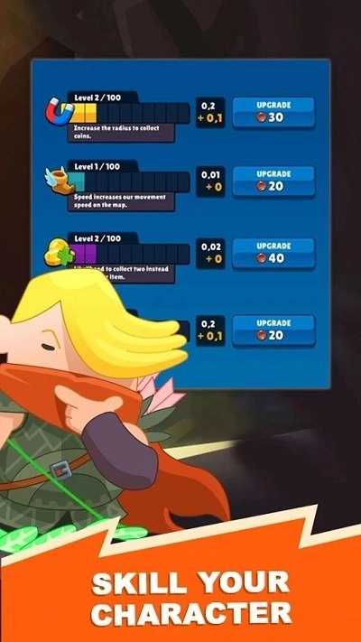 3、在前进的路上收集金币与各类道具,其中一部分能够提升角色的能力,还有一部分则是解锁新关卡或者获取新角色时不可或缺的物品。