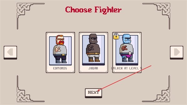 在ChooseFighter界面挑选可使用的角色,选好之后点击NEXT按钮,就能进入游戏接下来的环节。