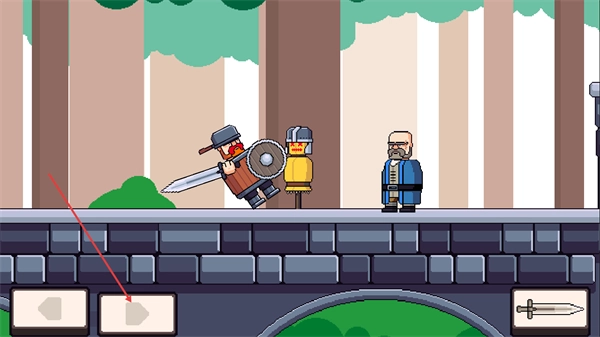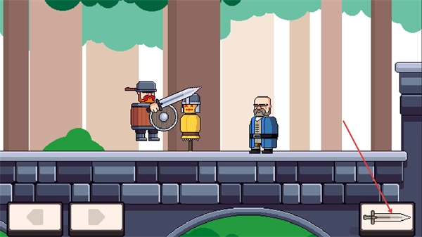 进入战斗场景后,借助底部的操作按钮来控制角色移动,操作手持剑盾的战士,和当前的敌方目标进行战斗。