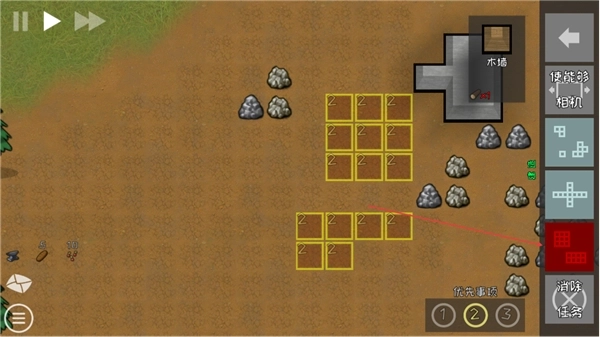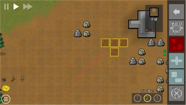 选取建筑区域内的黄色格子,利用资源建造木墙之类的建筑,以此来拓展殖民地。