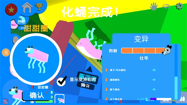 在变异界面查看狗狗的新形态,点击确认即可完成化蛹流程。