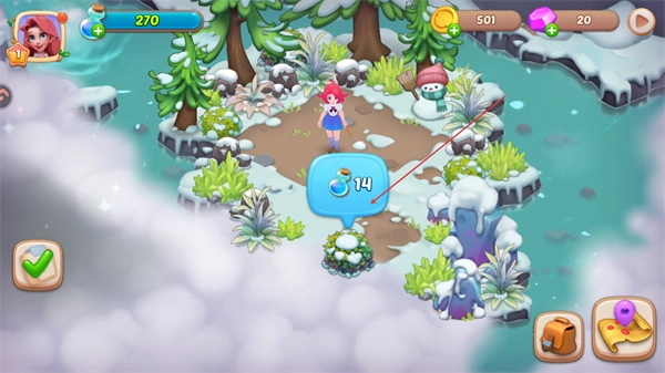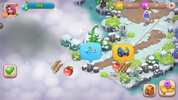 清除场景中的障碍,收集各类物品,增加道具的持有数量,推动关卡的进程。