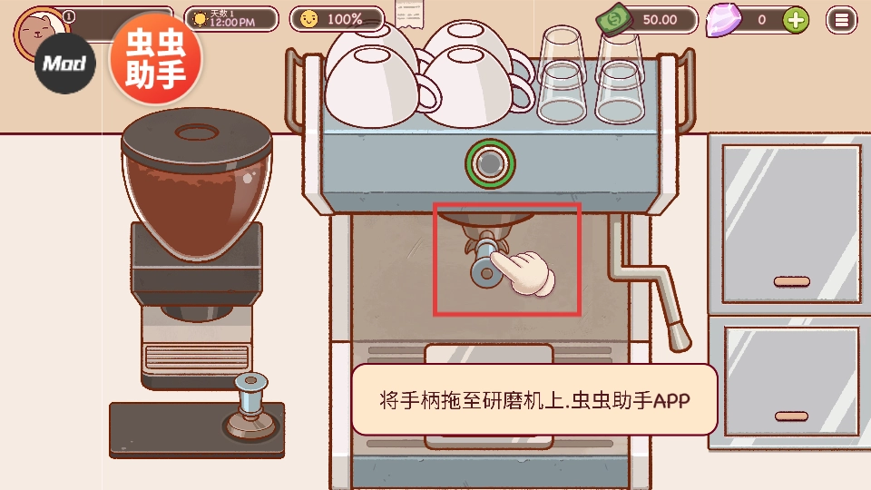 将手柄拖至研磨机上,为研磨咖啡豆做好准备。