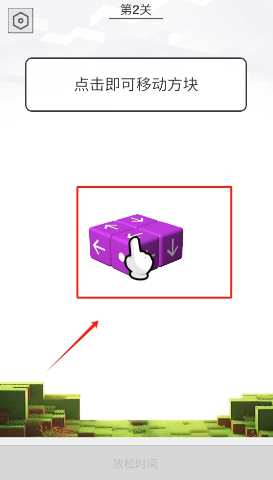 2、点击紫色带箭头的方块进行移动,按照提示操作,上方会显示第2关的信息以及游戏场景。