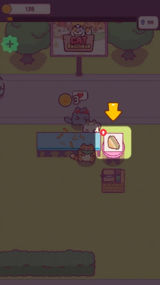 为猫咪提供食物以满足它们的需求,借此获取金币、积累资源,进而提升小吃店的等级。