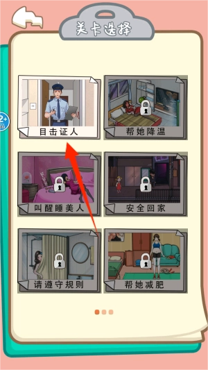2、进入关卡选择界面后,找到“目击证人”模式并点击确认,即可开启别具一格的案件推理环节。