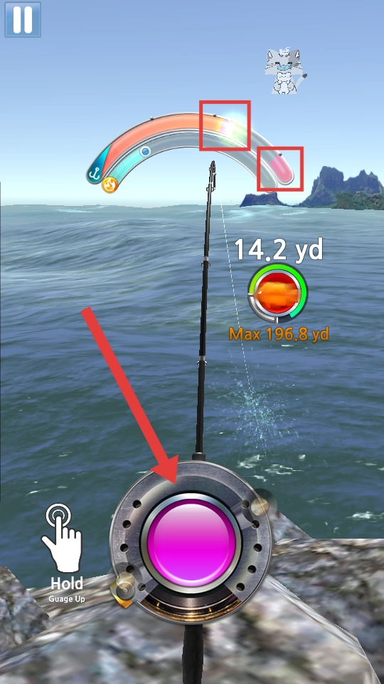 当鱼咬钩后,留意上方的能量条,在合适的时机点击【Push】按钮,以此来调控鱼竿的拉力,和鱼展开一场较量。