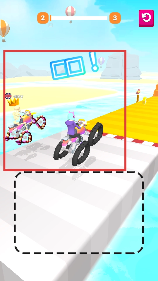 在下方的绘图区域里画出合适的图形,就能生成带有对应车轮的摩托车,现在可以准备开启骑行挑战啦。