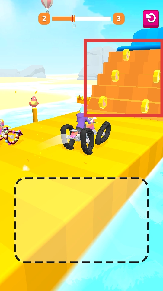 在赛道上收集金币,积累资源,同时应对复杂地形,顺利完成关卡挑战。