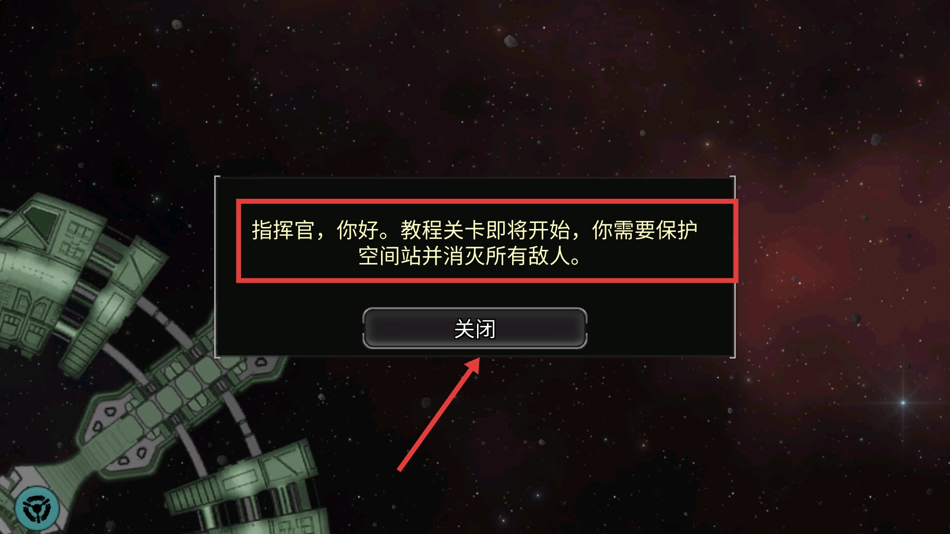 进入教程关卡时,要清楚自己的任务是保护空间站并消灭所有敌人,先处理提示信息,再开始战斗。
