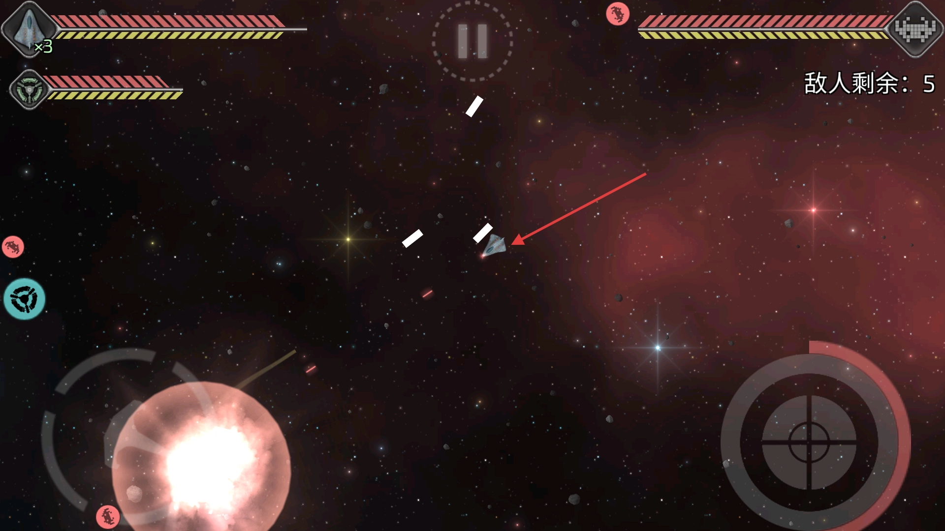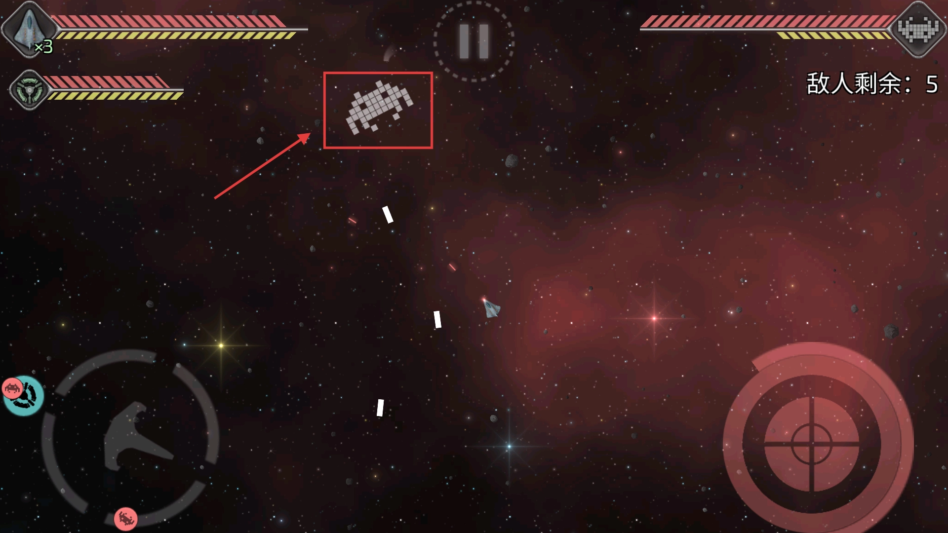 在战斗过程中,对准敌方飞船进行射击,留意敌人还剩下多少数量,第一时间清除那些逼近空间站的入侵者,以此降低所面临的威胁。