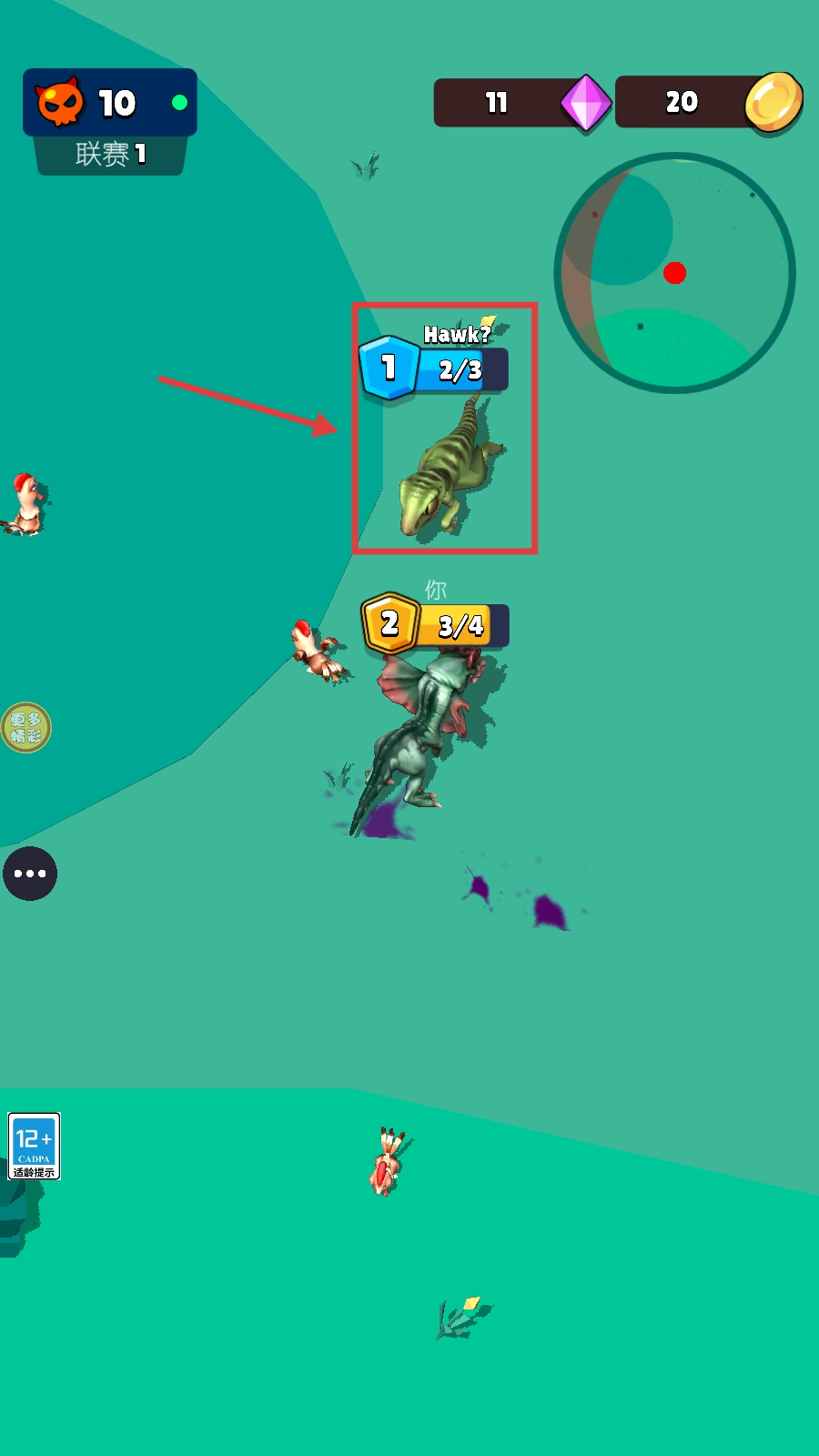 2、当碰到其他恐龙时,如果你的等级比对方高,那就可以找准机会发动攻击,战胜对手后能得到奖励,这样就能让自己变得更厉害啦。