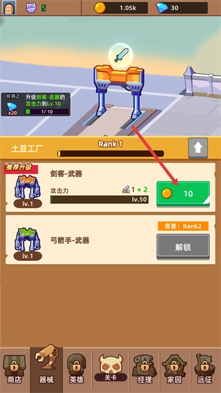 重复升级操作,武器攻击力会持续增长。