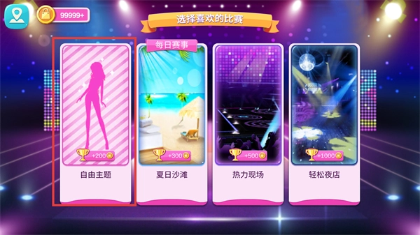 在选择比赛主题时,若选择【自由主题】,有助于快速积累资源,进而提升后续的搭配能力。