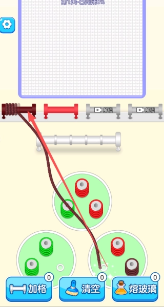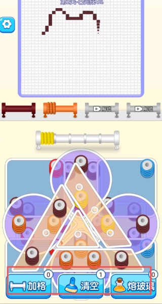 您可以用手指在屏幕上滑动,拖拽那些缠绕在一起的毛线线段,让它们从杂乱的状态慢慢分开,再把它们引导到对应颜色的线轴所在的区域。