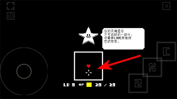 在游戏里跟着箭头的指引行动,留意灵魂爱心的状态变化,搞清楚它和LOVE之间的关联机制,向着维持灵魂存在的目标不断推进。