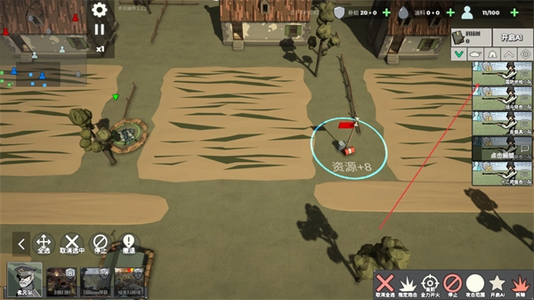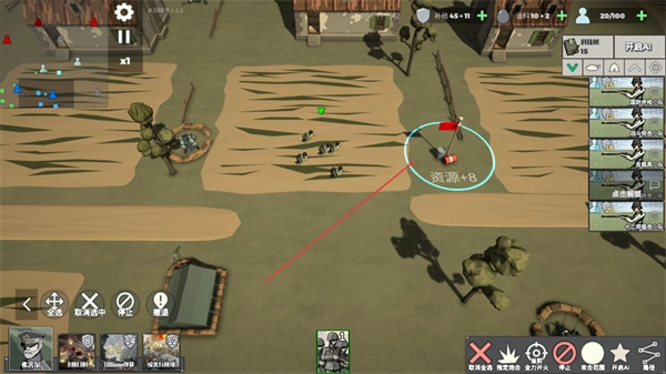 在战场上抢占资源点可获得资源+8,积攒这些资源能够用来调配部署部队。