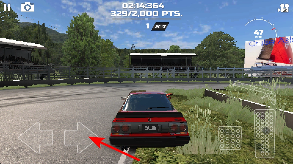在赛道驾驶过程中,按下右侧的方向按键,能够操控车辆向右调整行驶轨迹,使其更贴合赛道的走向,从而防止偏离赛道而对比赛进度造成影响。