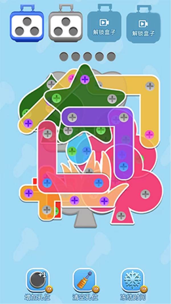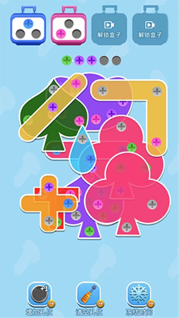增加孔位、冻结时间、暂停关卡计时,合理运用这些道具,就能突破复杂关卡。