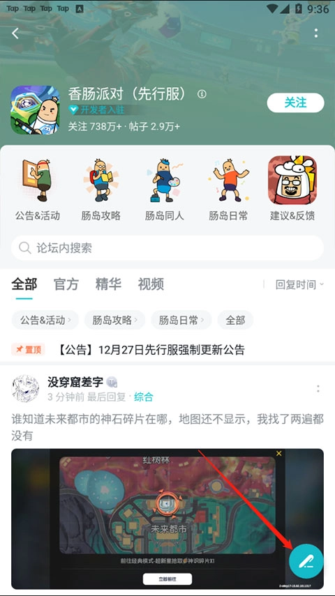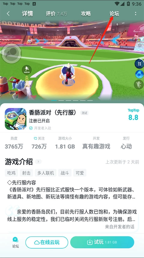2、点击香肠派对这个游戏,点击右上角的论坛。