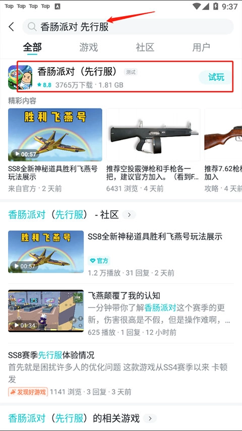 1、首先打开taptap,在首页上搜索香肠派对。
