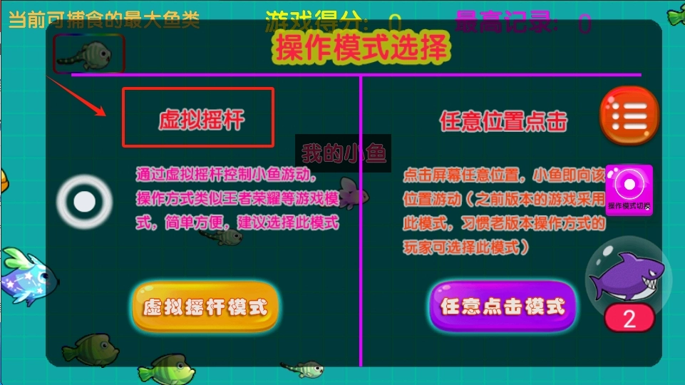 1、选择鱼类开始:玩家进入游戏后,可以选择不同的鱼类开始挑战,每种鱼都有独特的玩法。