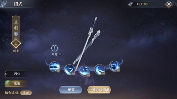和其他武器一样,单剑也拥有两套招式,偏向输出的“问心”,以及偏向灵动的“逍遥”,分别为三个独有技能+两个通用的散招。